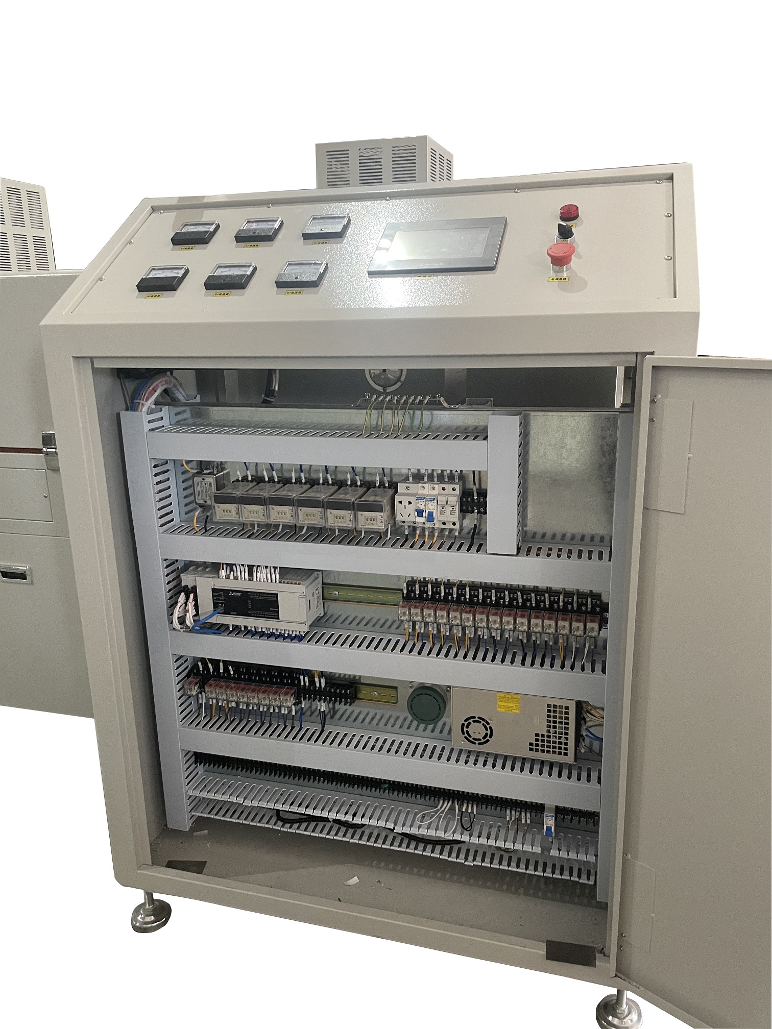 控制方式:采用(三菱)温度模块配合(桦特)SCR控制温度,控温精准,温度偏差小;操作介面采用(威伦)7寸彩屏配合(三菱)PLC设定及