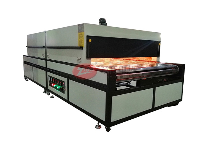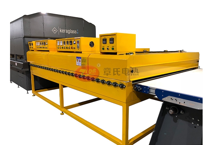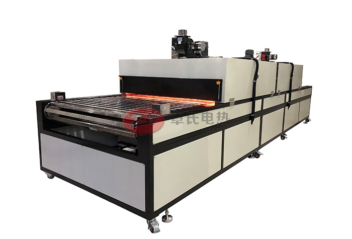 4、控制部分:每段炉盖配单独的小控置电箱,每段的温度可独立控制和显示,温控系统宣荣牌H721型微电脑智能型数显温控器,配有PV和SV数字显示窗口,采用模块连续缓冲式输出控制加热器,  采用SSR固态继电器输出。颠覆传统过零触发时带来的电流瞬间冲击大、控温波动大等影响,配合性价比极高的E系列4-20MA输出型温控器,可使输出电压平稳线性变化,控温效果更稳定,性能更卓越,(可根据温度的误差大小自动调整输出功率的大小)使温度更加精准,  温度室温至200℃任意可调,双温控器控制(设有超温上限温控器,防止因主温控器失控而损坏其产品,功能有PID自整定微积分控制、自动恒温、超温断电报警、漏电保护、电机过载保护等功能,内部温差±3度;分四段八路控制(当到达设定温度时可任意关掉其中几段发热管,降低加热功率,其达到省电效果)。其它控制电路电器均采用进口三菱和日本富士电器控制;前后设有紧急停机按钮.确保安全.箱体前后两段装有多色指示灯,可随时监控炉内的工作情况和故障.链条设有防卡死和报警装置。