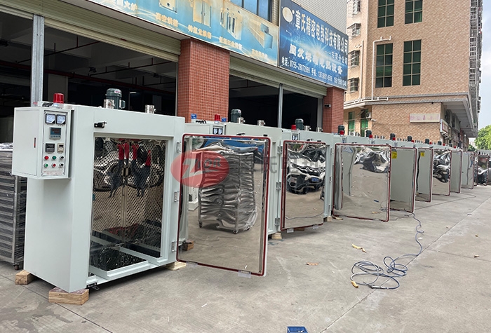 烘干箱箱体由角钢、薄钢板制成。外壳与工作室间填充玻璃纤维保温棉。加热系统装置在工作室内。装有鼓风的本型烘干箱能有效的避免工作室内存在的梯度温差及温度过冲现象,且能提高工作室内的温度均匀性。